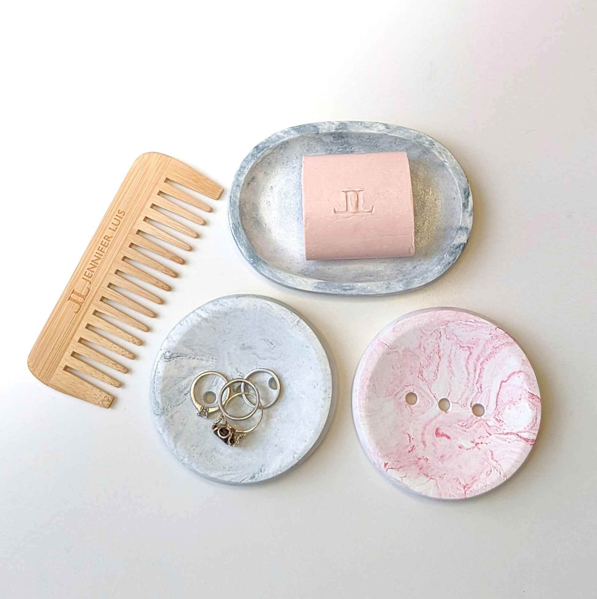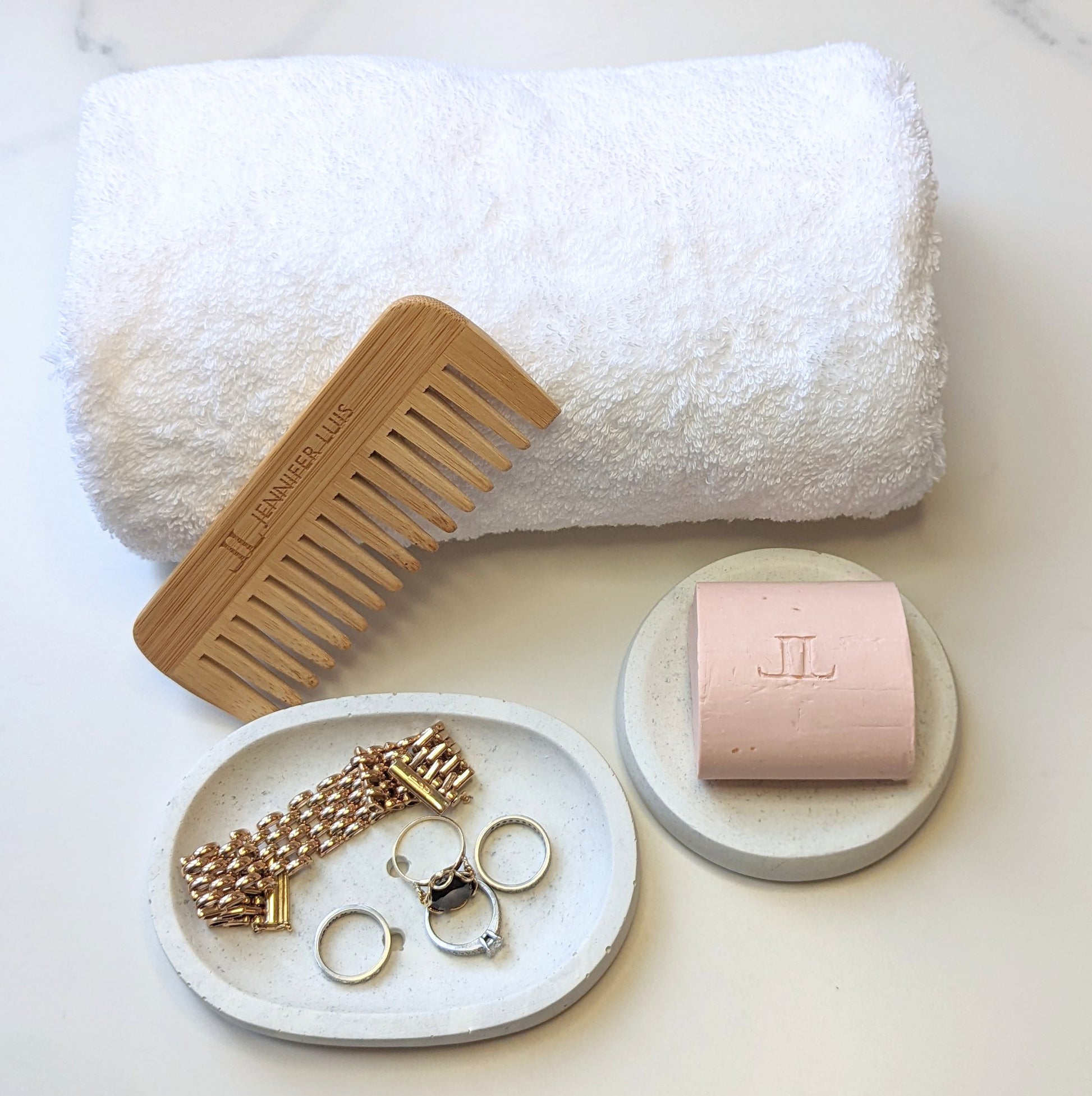 These beautiful dishes will add a perfectly stylish finish to any bathroom for a modern spa-like look. Your Jennifer Luis shampoo bars will look wonderful in these contemporary handcrafted concrete dishes.